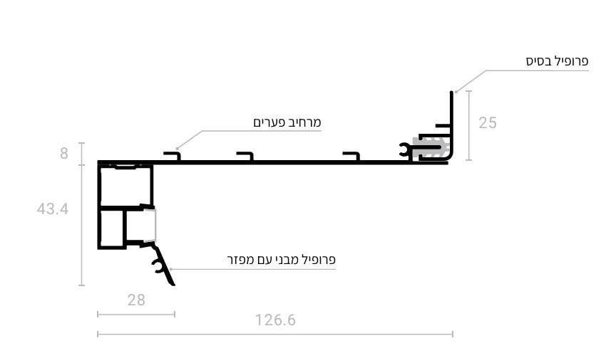 מערכת מודולארית אשר מכסה 99% מהצרכים- פרופילי ניתוק צל, פרופילים צפים ברוחב שונה עם תאורה וללא תאורה, פרופילים נסתרים לוילונות עם תאורה נסתרת במידות שונות וכו'