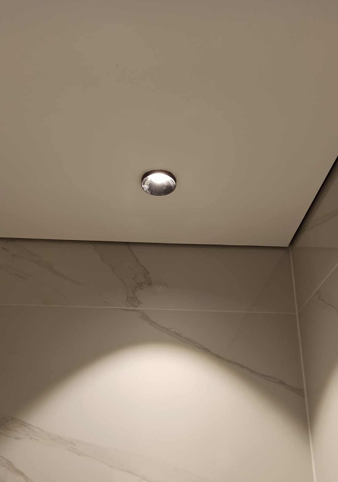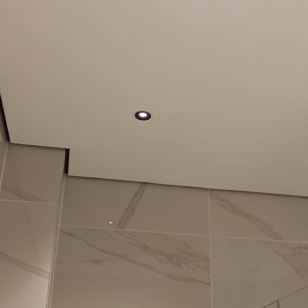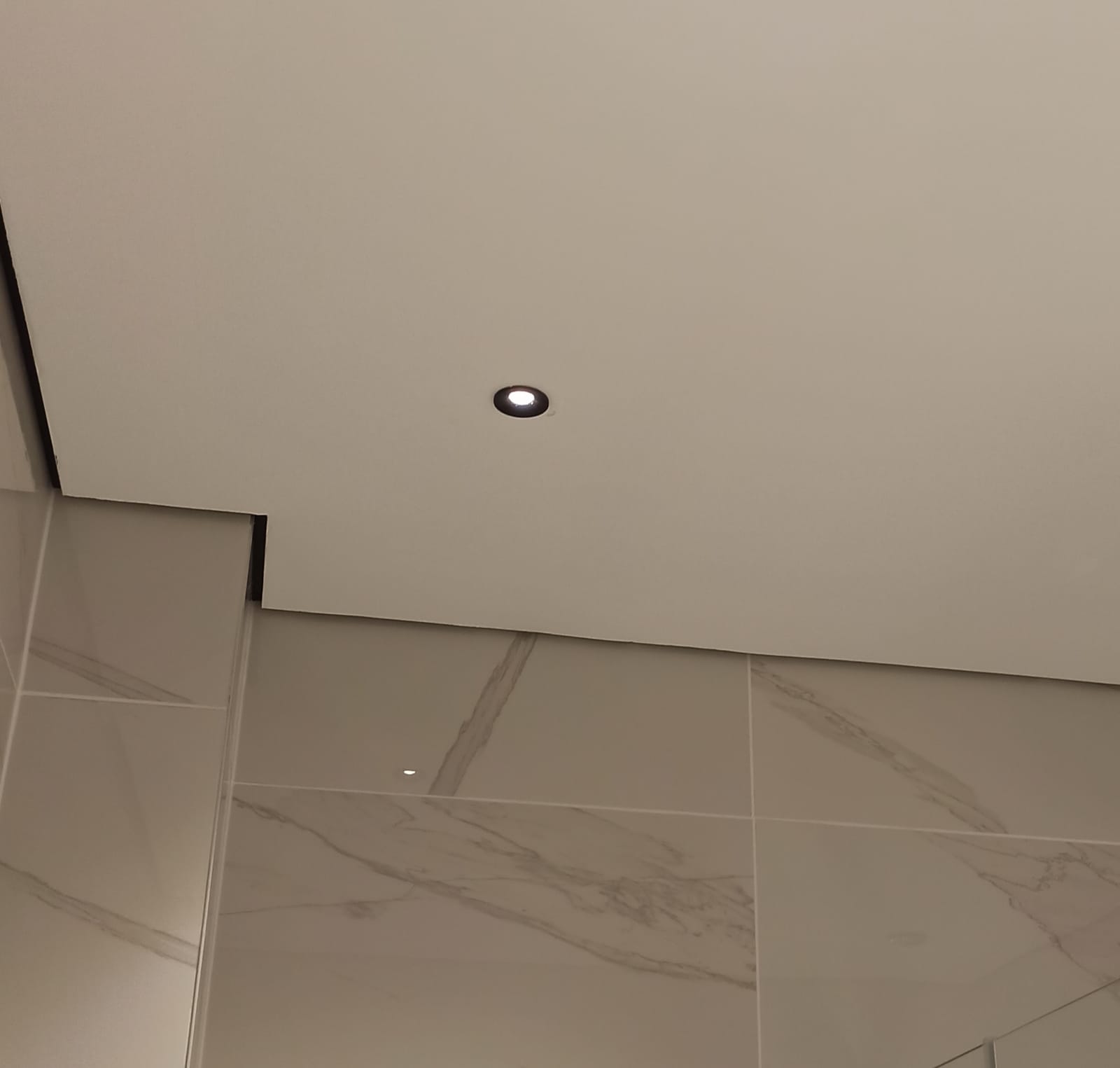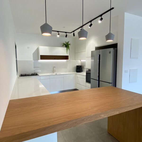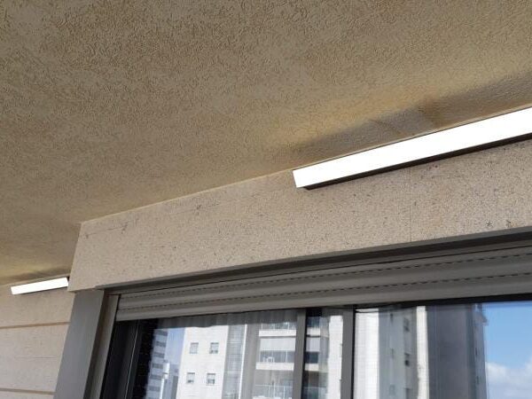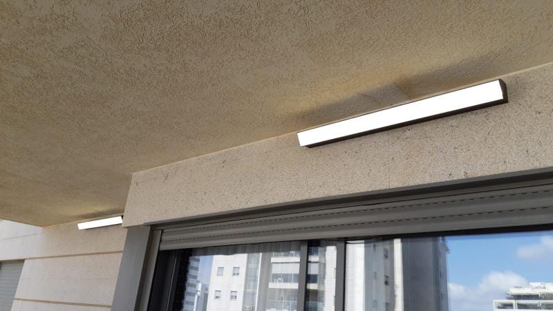 עיצוב תאורה בהתאמה אישית למטבח ספוטים לפסי צבירה מתכוננים, מעל האי גופי תאורה ביציקה קלה של בטון. לתאורת חוץ פרופיל לד AR-8112 משופע ב45 מעלות באורך 3 מטר ועוד