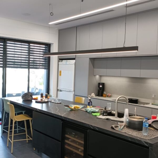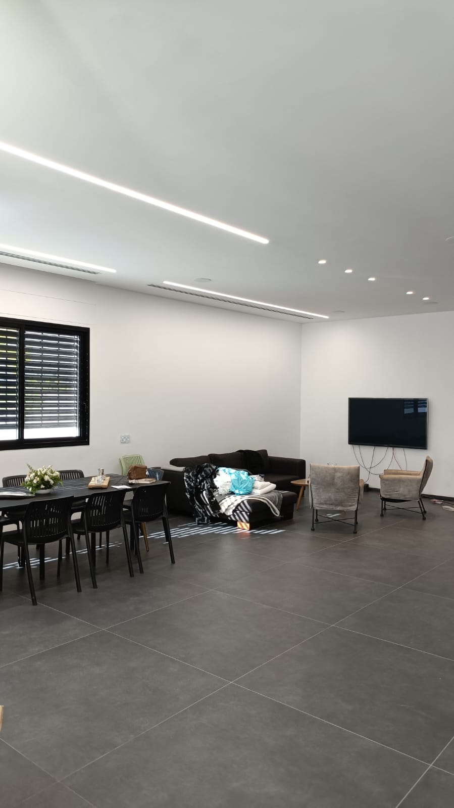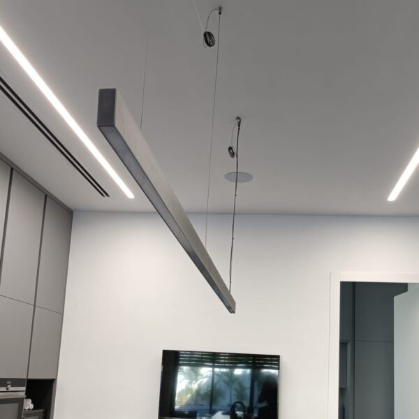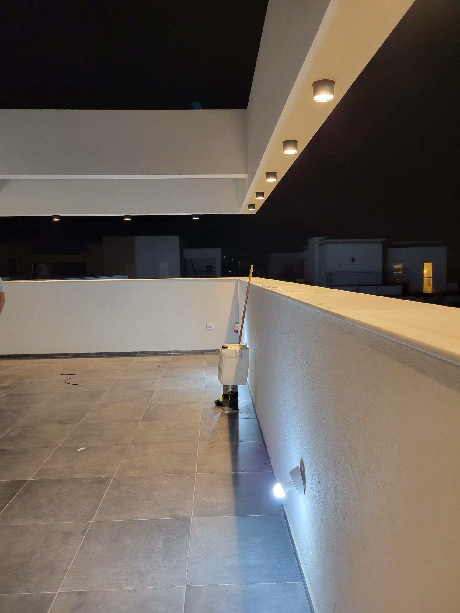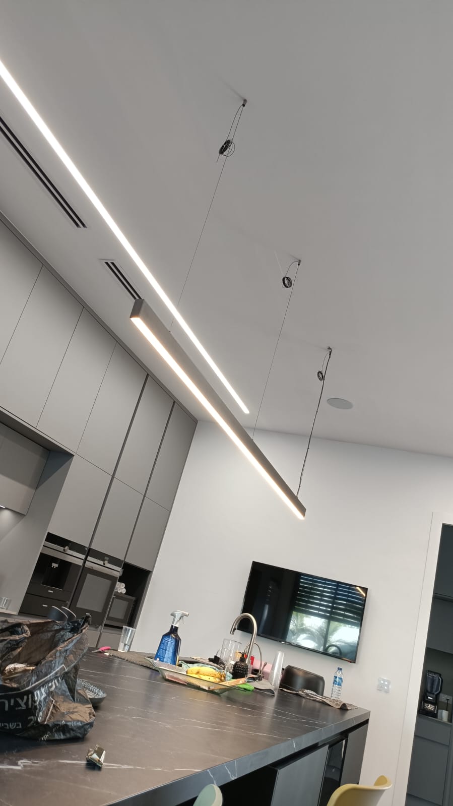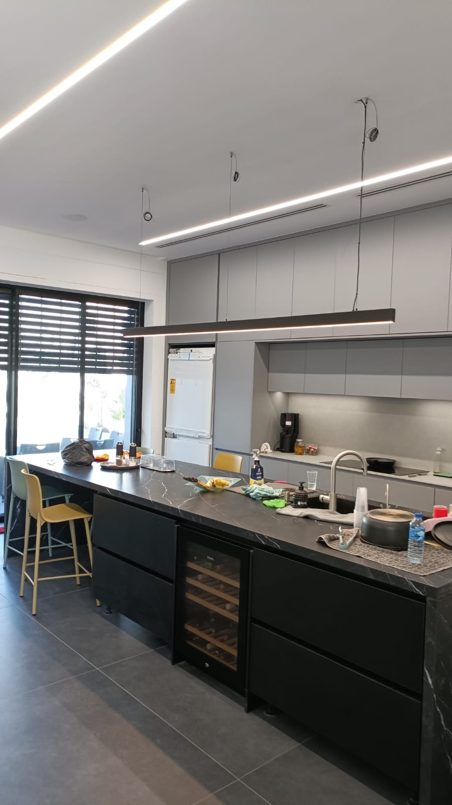 עיצוב תאורה יצור פרופילים לד AR-6114 TRIMLESS ופרופיל לד תלייה AR-3595. ספוטים שקועים בגבס, צילינדרים צמודים מוגני מים לתאורת חוץ, מאווררים מעוצבים ועוד
