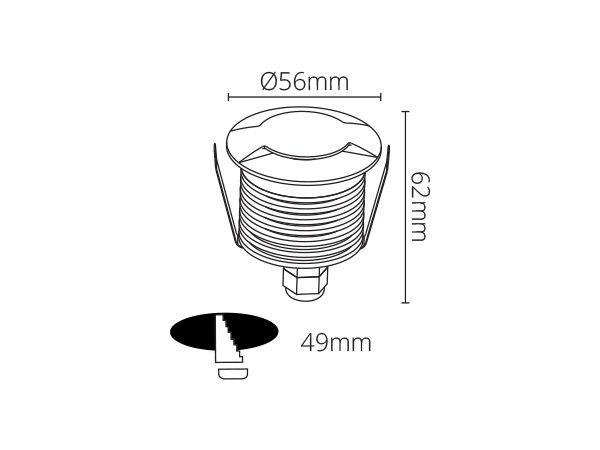 גוף תאורה שקוע רצפה לשימוש תאורת חוץ. מקור אור 3W LED. מיוצר מאלומיניום, זמין בצבע לבן, שחור.