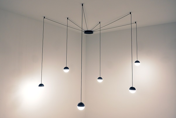 גוף תאורה תלוי לשימוש תאורת פנים. מקור אור 6x8W LED. מיוצר מאלומיניום, זמין בצבע שחור.