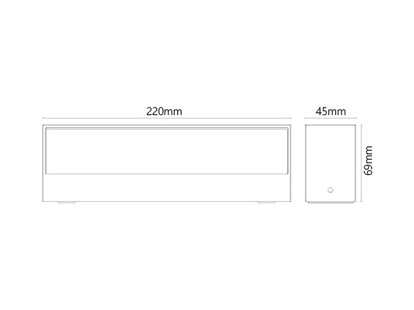 גוף תאורה צמוד קיר לשימוש תאורת חוץ. מקור אור 16W LED. מיוצר מאלומיניום וזכוכית, זמין בצבע אפור, בזלת, לבן.