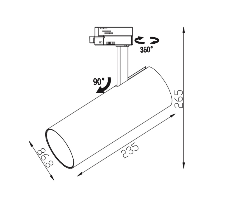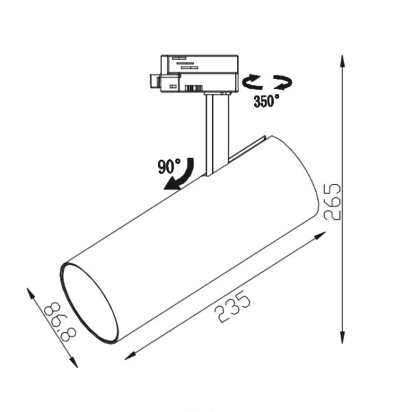 גוף תאורה תלת פאזי לפס צבירה, לשימוש תאורת פנים. מקור אור 40W LED. מיוצר מאלומיניום. זמין בצבע לבן, שחור.