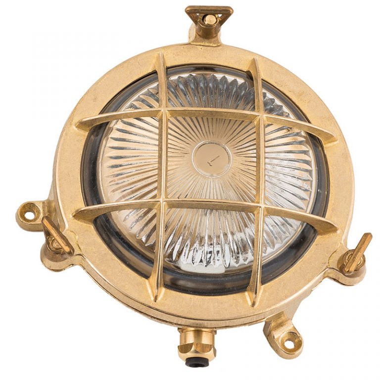 גוף תאורה צמוד קיר מעוצב וינטג' עגול לשימוש תאורת פנים וחוץ. מקור אור G9. מיוצר מפליז זמין בצבע נחושת. ללא נורה