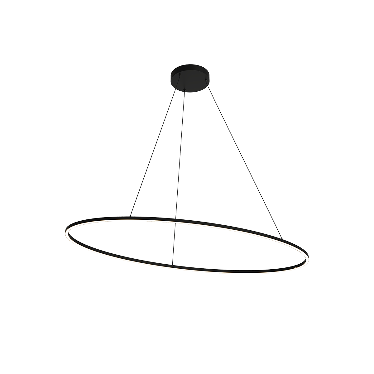 גוף תאורה תלייה מעוצב אובלי עדין מרשים במיוחד לשימוש תאורת פנים. מקור אור 48W LED OSRAM. מיוצר מאלומיניום. זמין בצבע שחור מט.