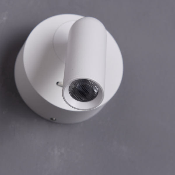 גוף תאורה צמוד קיר מעוצב DOWN מתכוונן + מפסק עצמאי לשימוש תאורת פנים. מקור אור 3W LED CREE. מיוצר מאלומיניום. זמין בצבע שחור מט, לבן מט. מתאים מצידי מיטה לתאורת קריאה.