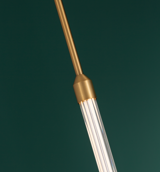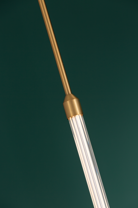 גוף תאורה צינור עדין תלוי מתקרה לרצפה מעוצב מרשים במיוחד מאיר ב360 מעלות לשימוש תאורת פנים. מקור אור 15W LED EDISON. מיוצר מאלומיניום. זמין בצבע זהב מט.