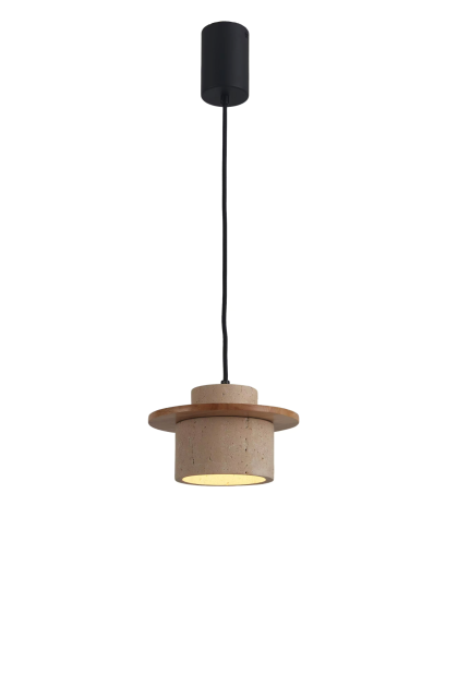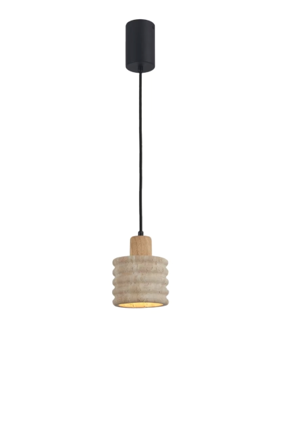 גוף תאורה תלייה מעוצב לשימוש תאורת פנים. מקור אור E27 מיוצר מאבן טרוונטין ועץ.