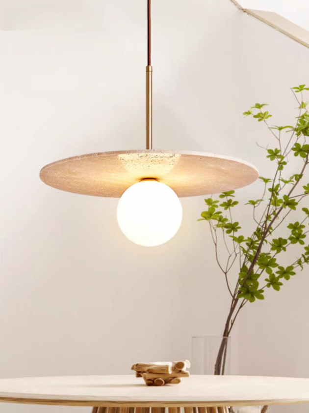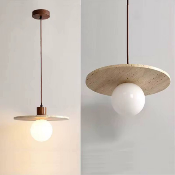 גוף תאורה תלייה מעוצב לשימוש תאורת פנים. מקור אור G9 מיוצר מאבן טרוונטין וזכוכית.
