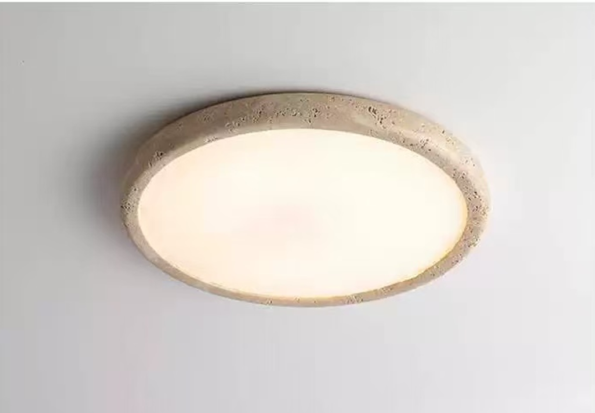 גוף תאורה צמוד תקרה מעוצב לשימוש תאורת פנים. מקור אור 20W LED מיוצר מאבן טרוורטין טבעית.
