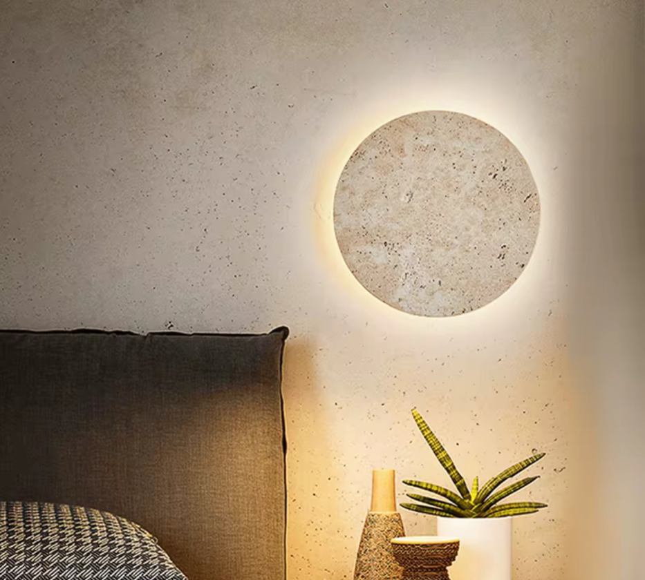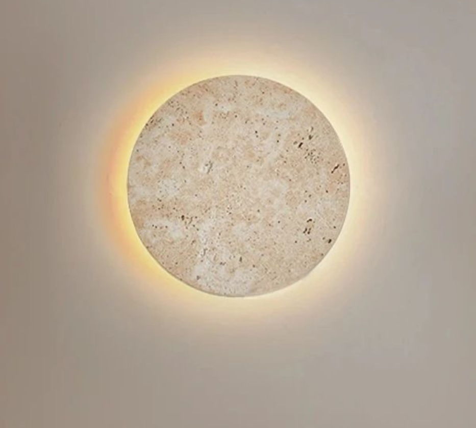 גוף תאורה צמוד קיר מעוצב BACK LIGHT לשימוש תאורת פנים. מקור אור 12W LED מיוצר מאבן טרוורטין טבעית.