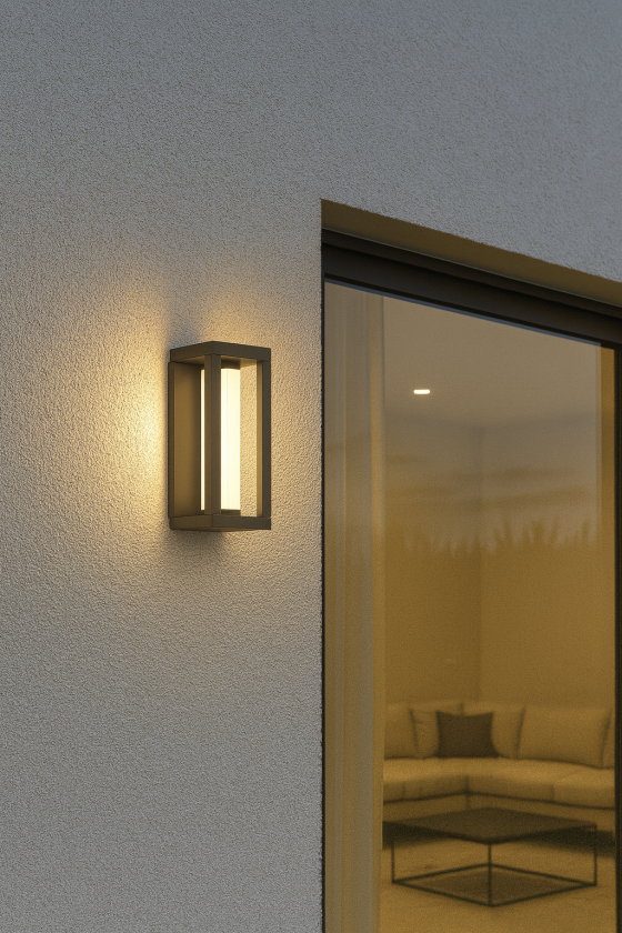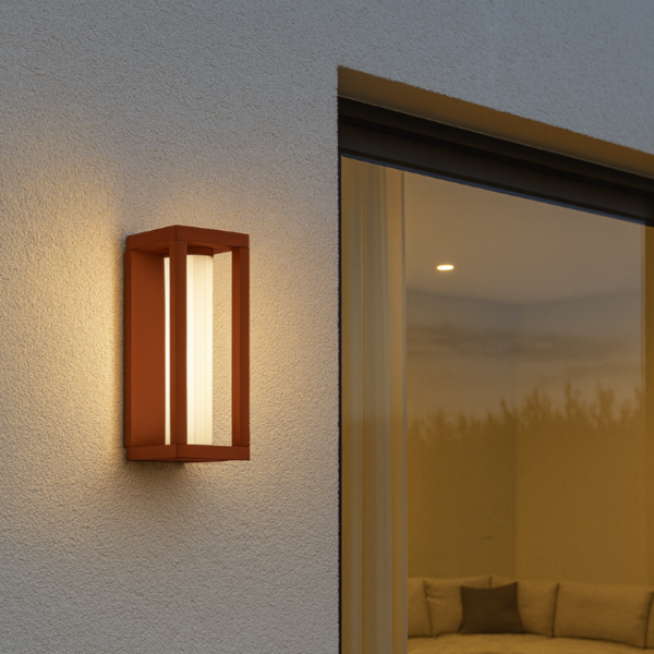 גוף תאורה צמוד קיר מעוצב מוגן מים. לשימוש תאורת פנים וחוץ. מקור אור 12W LED. מיוצר מאלומיניום. זמין בצבע שחור מט, טרקוטה מט, אפור מט.