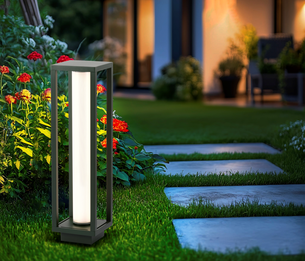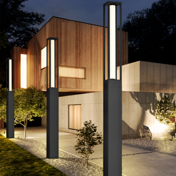 גוף תאורה עמוד רצפה גבוה לשימוש תאורת חוץ. מקור אור 25W LED. מיוצר אלומיניום. מוגן מים. זמין בצבע שחור מט.
