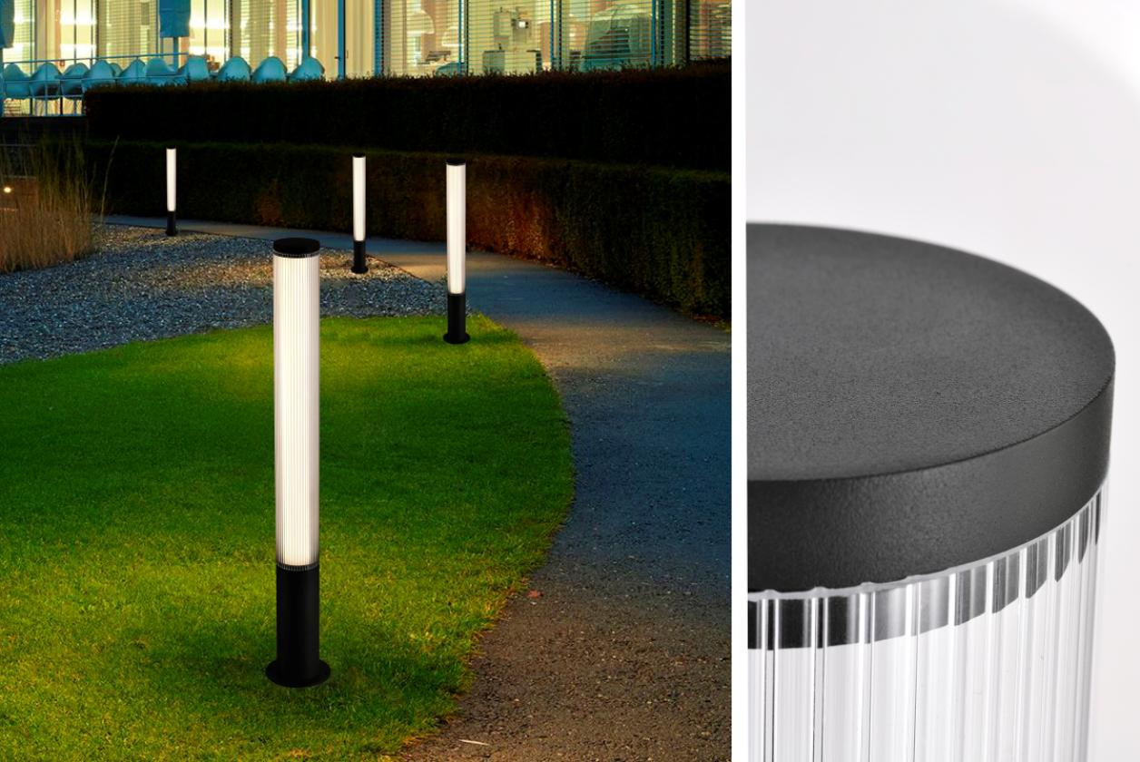גוף תאורה עמודון רצפה לשימוש תאורת חוץ. מקור אור 21W LED. מיוצר אלומיניום. מוגן מים. זמין בצבע שחור מט.