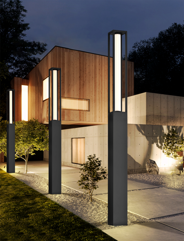 גוף תאורה עמודון רצפה לשימוש תאורת חוץ. מקור אור 12W LED. מיוצר אלומיניום. מוגן מים. זמין בצבע שחור מט.