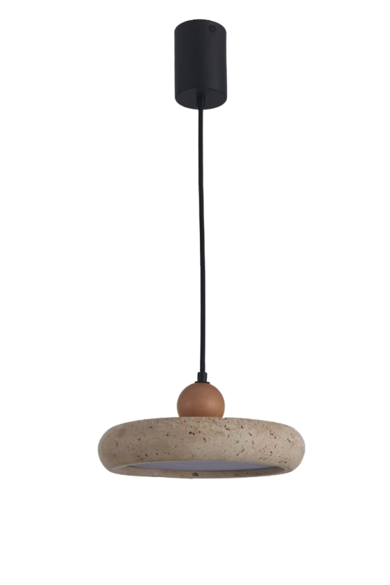 גוף תאורה תלייה מעוצב לשימוש תאורת פנים. מקור אור E27 מיוצר מאבן טרוונטין.