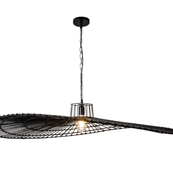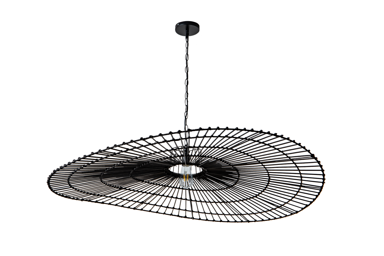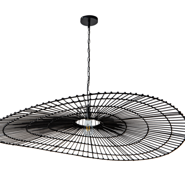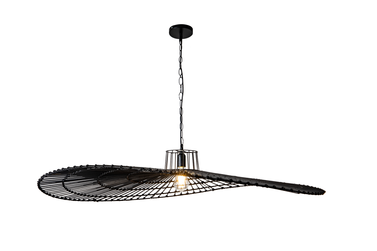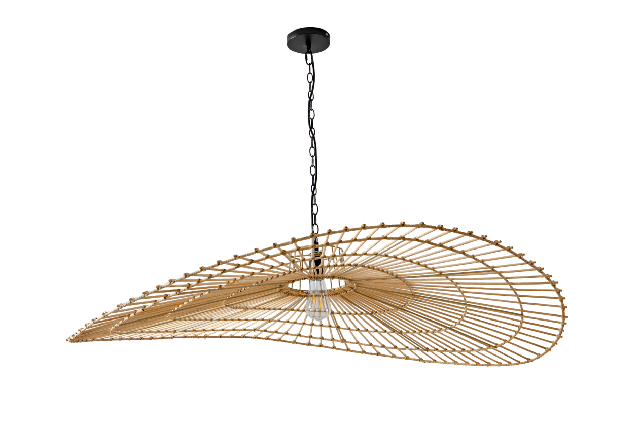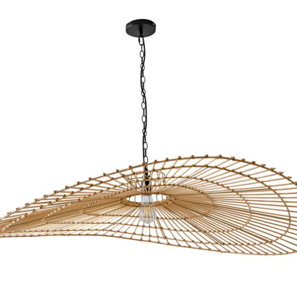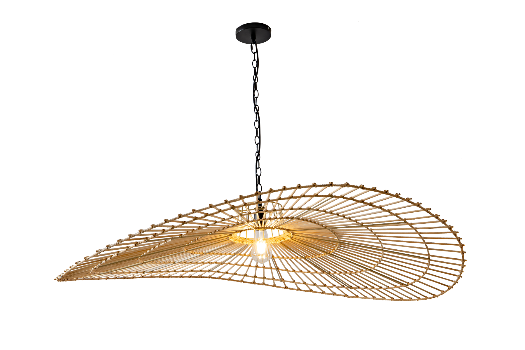 גוף תאורה תלייה במבוק קש מעוצב לשימוש תאורת פנים. מקור אור E27 LED. מיוצר מקש. זמין בצבע טבעי, שחור.