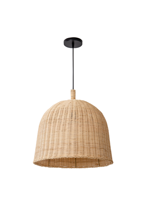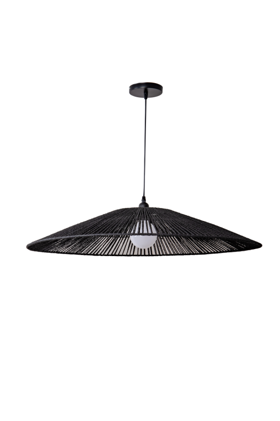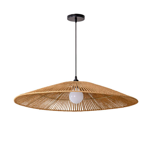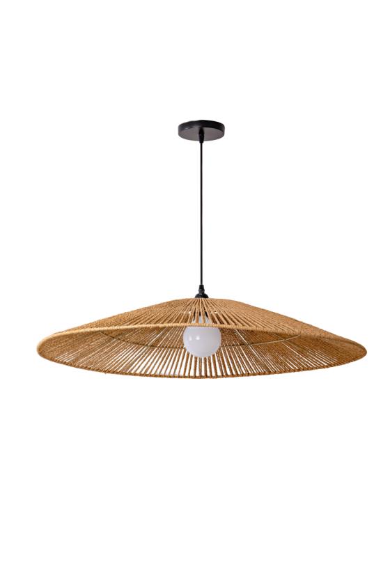 גוף תאורה תלייה במבוק קש מעוצב לשימוש תאורת פנים. מקור אור E27 LED. מיוצר מקש. זמין בצבע טבעי, שחור.