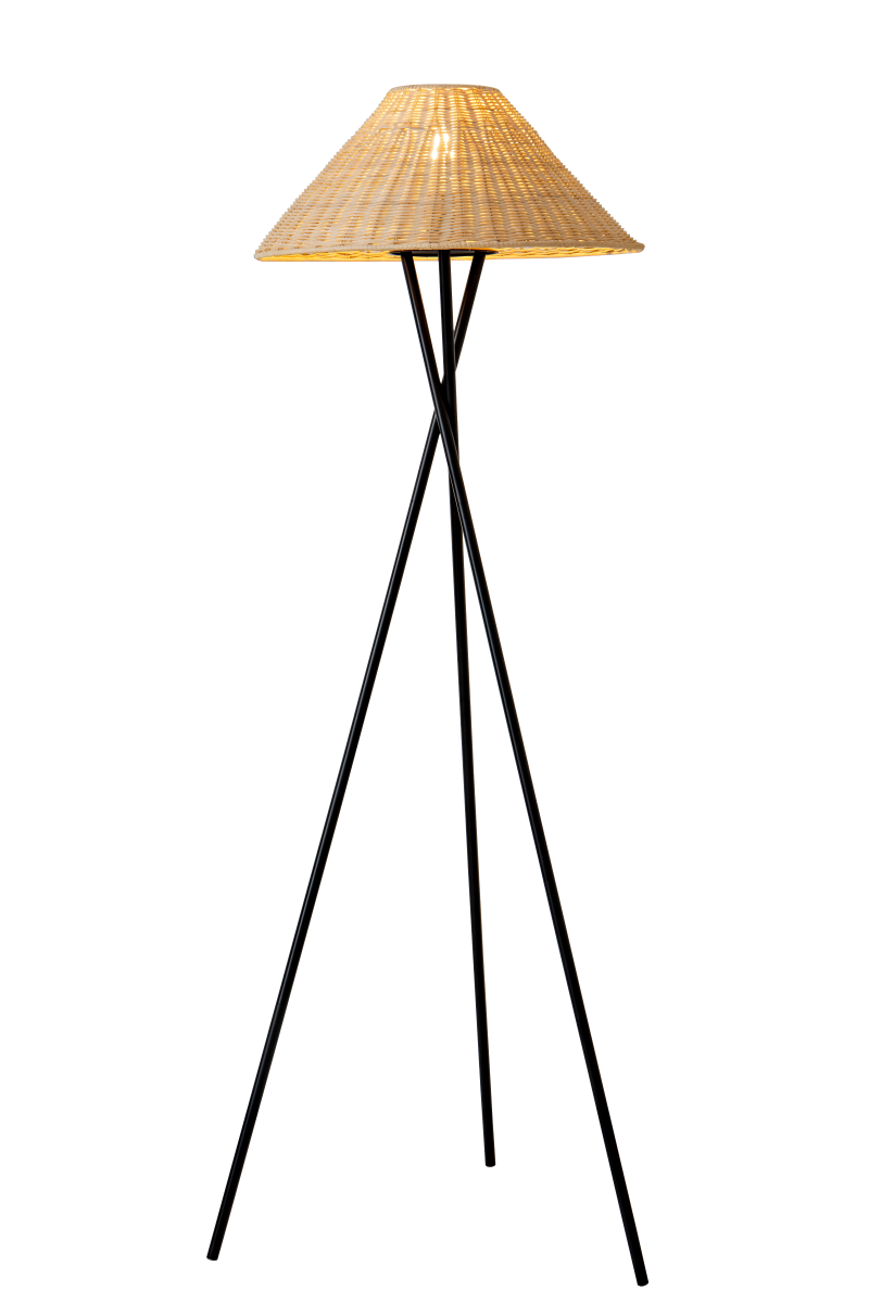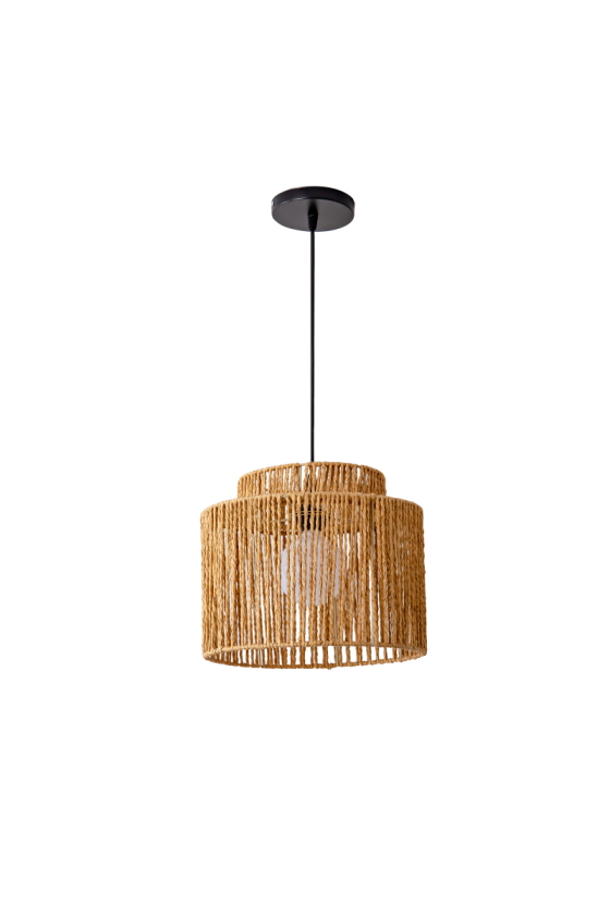 גוף תאורה עמידה במבוק קש מעוצב לשימוש תאורת פנים. מקור אור E27 LED. מיוצר מקש ואלומיניום. זמין בצבע טבעי.