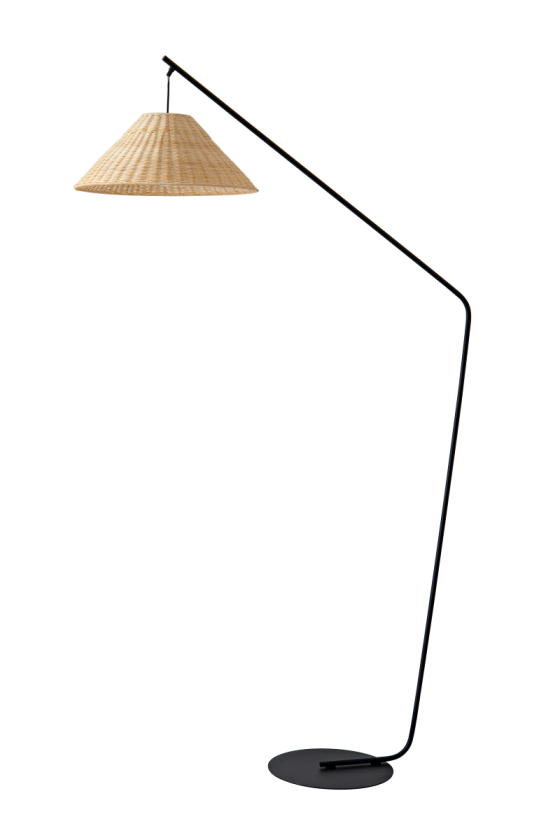 גוף תאורה עמידה במבוק קש מעוצב לשימוש תאורת פנים. מקור אור E27 LED. מיוצר מקש ואלומיניום. זמין בצבע טבעי.