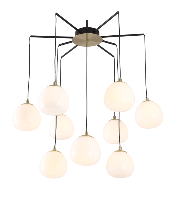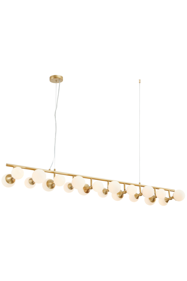 גוף תאורה תלייה מעוצב לשימוש תאורת פנים. מקור אור 20XG9 11W LED. מיוצר ממתכת וזכוכית. זמין בצבע זהב מט.