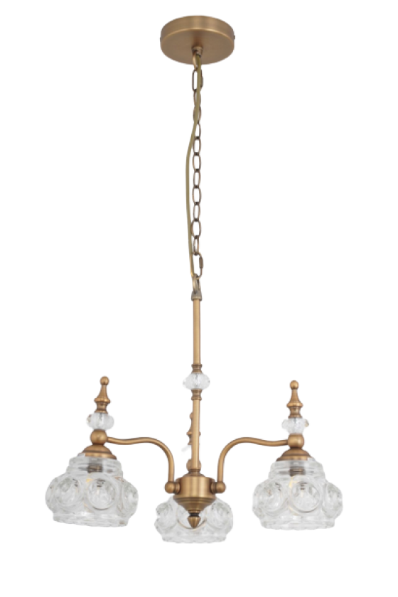 גוף תאורה תלייה מעוצב וינטג' לשימוש תאורת פנים. מקור אור 5XE27. מיוצר ממתכת וזכוכית שקופה. זמין בצבע ברונזה מט. ללא נורות.