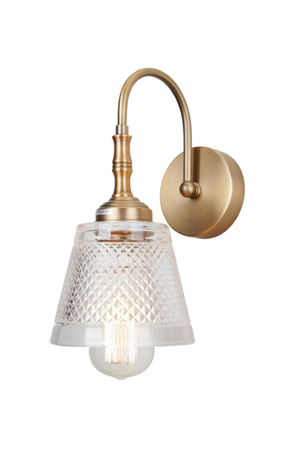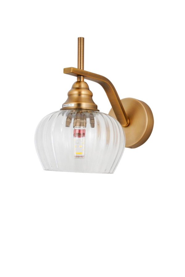 גוף תאורה צמוד קיר מעוצב וינטג' לשימוש תאורת פנים. מקור אור E27. מיוצר ממתכת וזכוכית. זמין בצבע ברונזה מט.
