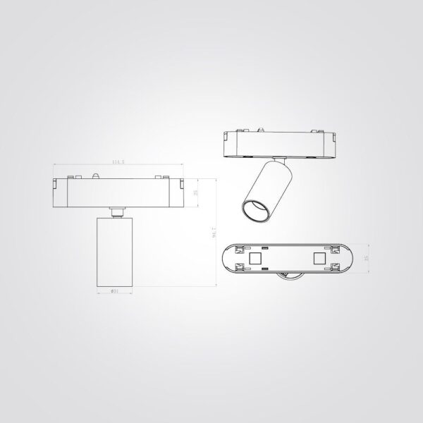 גוף תאורה ספוט מגנטי מעוצב מתכוונן לשימוש תאורת פנים. מקור אור 5W LED. מיוצר מאלומיניום. זמין בצבע שחור מט, לבן מט.