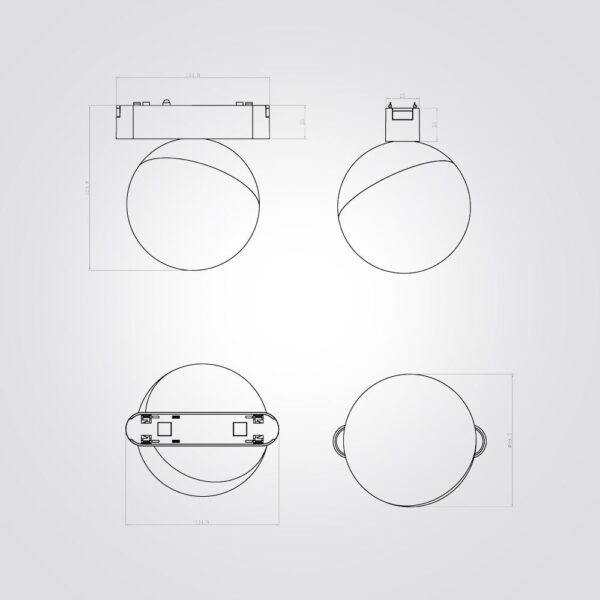 גוף תאורה ספוט מגנטי מעוצב כדור עגול לשימוש תאורת פנים. מקור אור 10W LED. מיוצר מאלומיניום. זמין בצבע שחור מט, לבן מט.