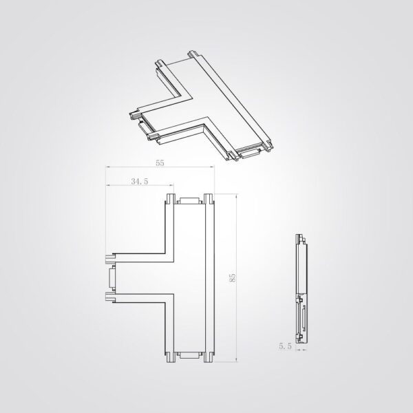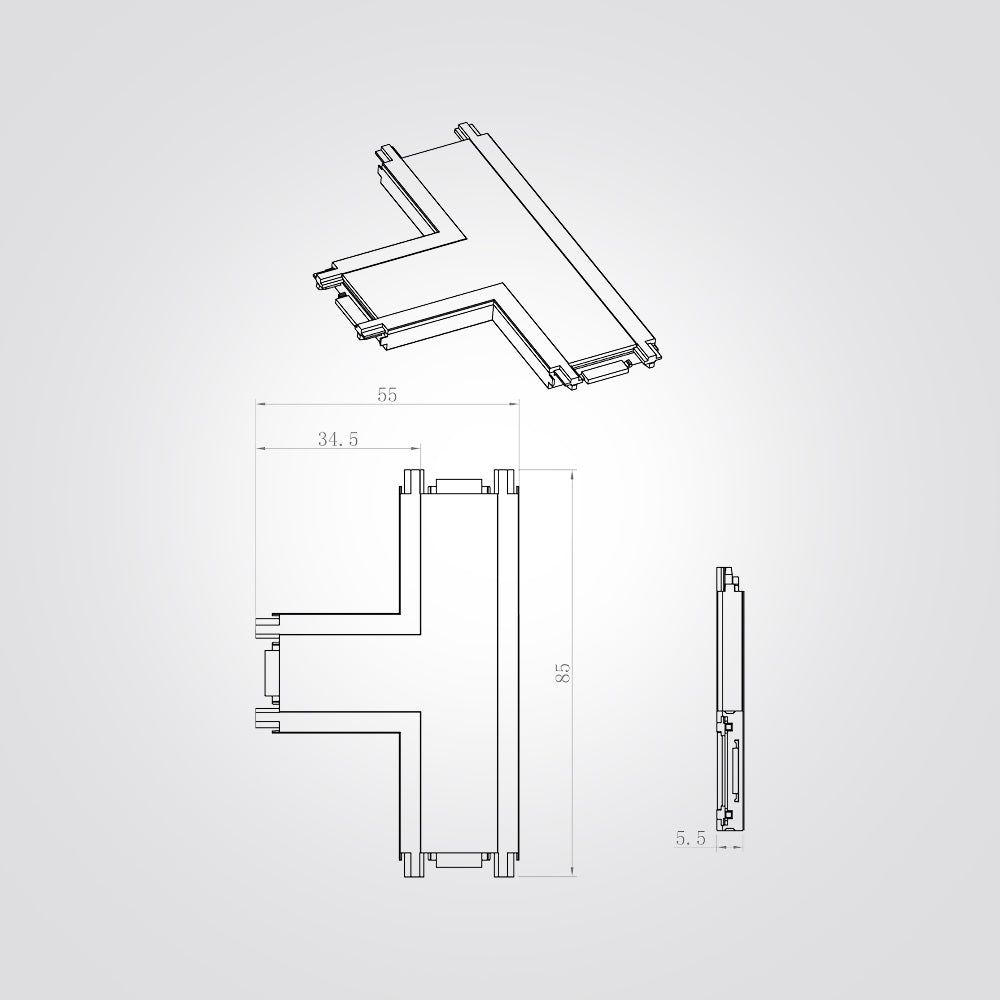 מחבר T מחושמל 48V מיוצר מאלומיניום. זמין בצבע שחור מט, לבן מט.