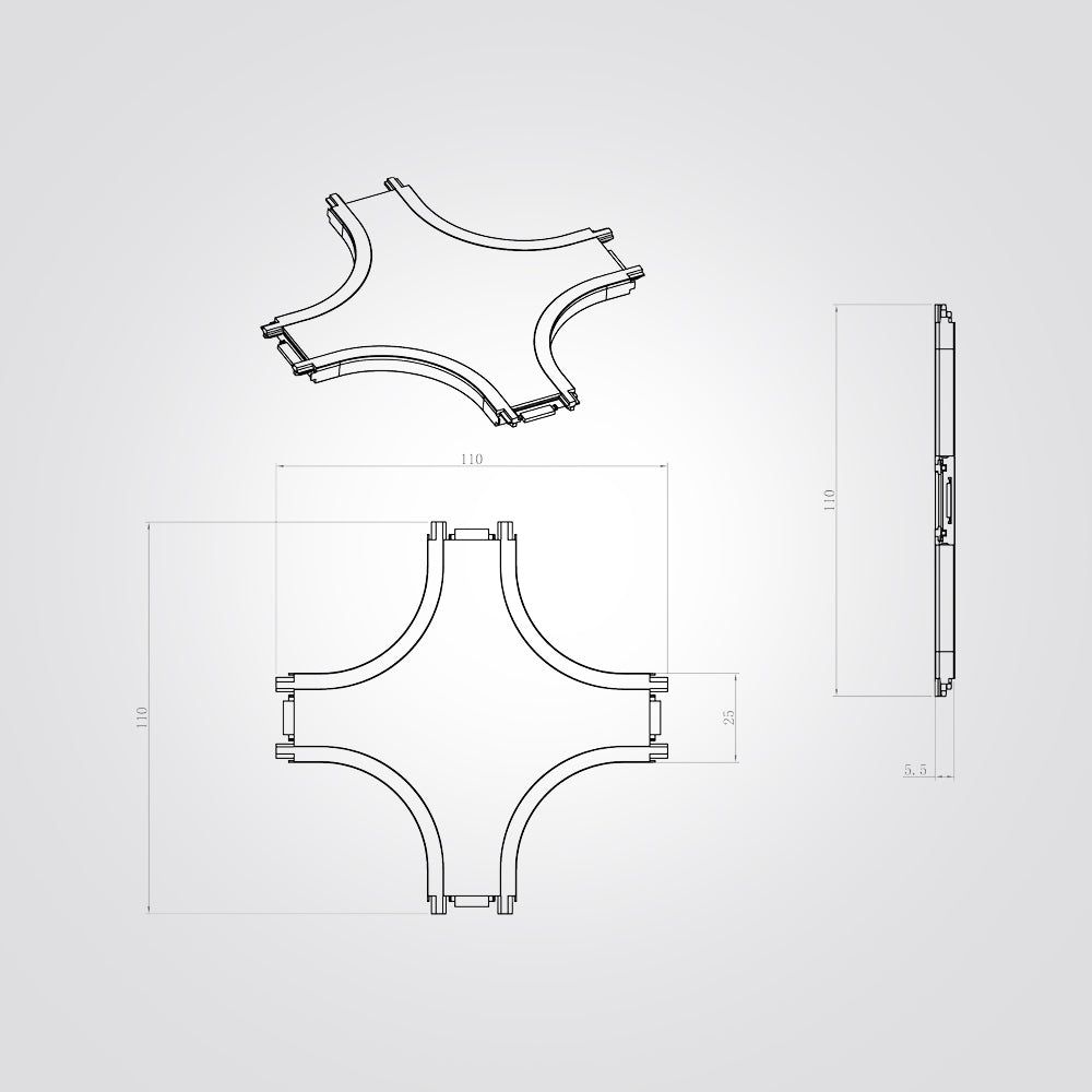 מחבר X מחושמל 48V מיוצר מאלומיניום. זמין בצבע שחור מט, לבן מט.