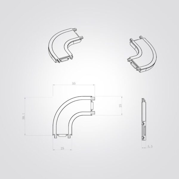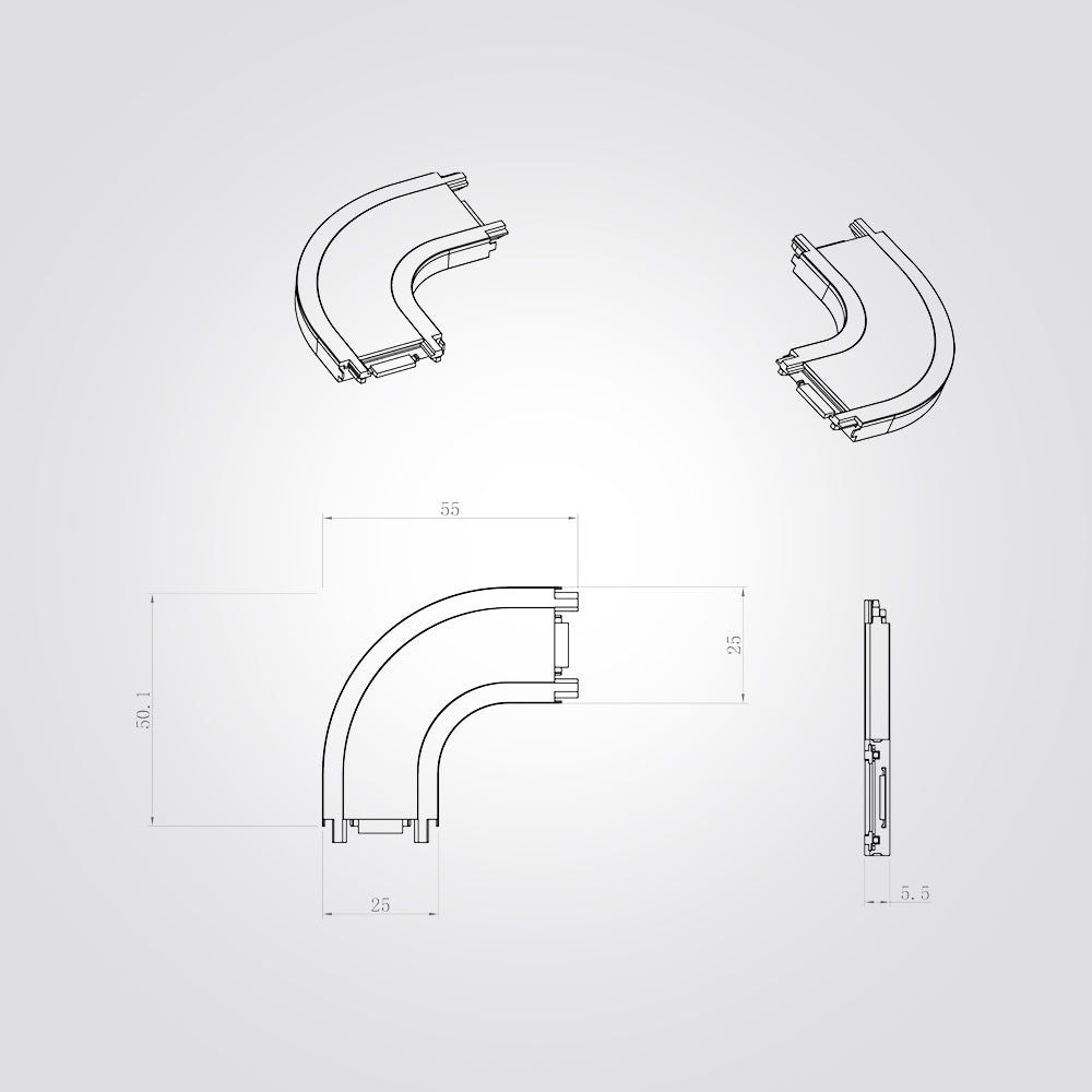 מחבר קשת מחושמל 48V מיוצר מאלומיניום. זמין בצבע שחור מט, לבן מט.