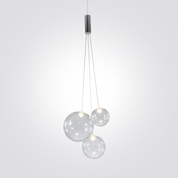 גוף תאורה תלייה מעוצב לשימוש תאורת פנים. מקור אור 3X3W LED. מיוצר מאלומיניום וזכוכית. זמין בצבע זכוכית שקופה, כרום, זהב, נחושת.