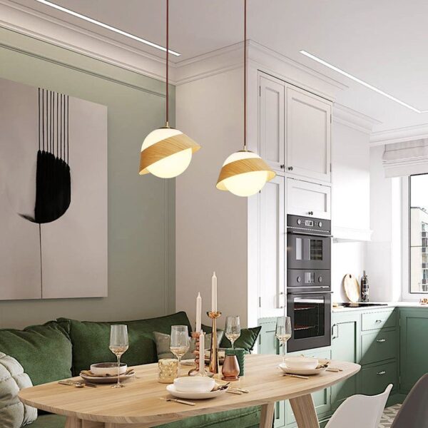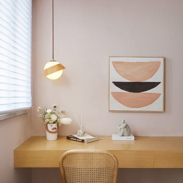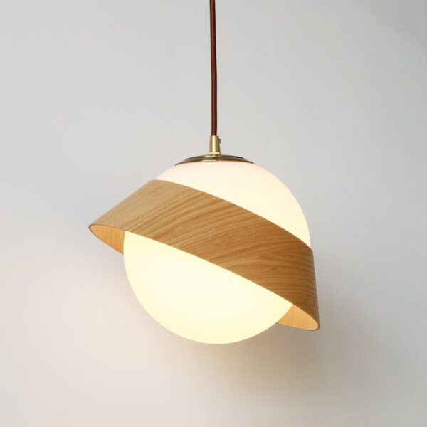 גוף תאורה תלייה מעוצב עדין לשימוש תאורת פנים. מקור אור E27 60W LED MAX. מיוצר מעץ אלון טבעי וזכוכית. זמין בצבע אלון.
