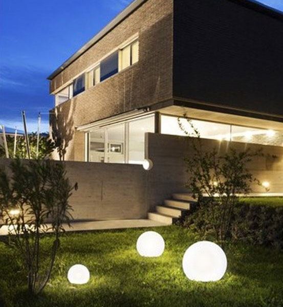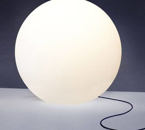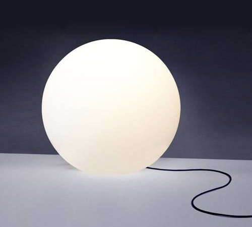 גוף תאורה רצפה EU כדור חלבי עגול מעוצב ומואר בקטרים שונים לשימוש תאורת פנים וחוץ. מקור אור E27. מיוצר PE.