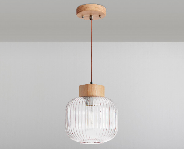 גוף תאורה תלייה מעוצב לשימוש תאורת פנים. מקור אור E-27. מיוצר מזכוכית ועץ. זמין בצבע עץ וזכוכית שקופה, עץ וזכוכית חלבית.