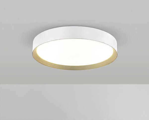 גוף תאורה צמוד תקרה מעוצב לשימוש תאורת פנים. מקור אור 30W LED. מיוצר מאלומיניום. זמין בצבע שחור מט, לבן מט. שחור וזהב, לבן וזהב. ניתן לעמעום TRIAC