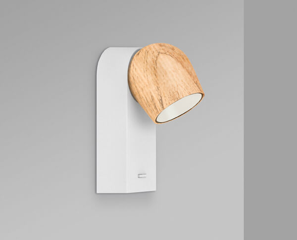 גוף תאורה צמוד קיר מעוצב מרשים במיוחד עם מפסק לשימוש תאורת פנים. מקור אור 6W LED CREE. מיוצר מאלומיניום. זמין בצבע שחור מט, שחור ועץ, לבן מט, לבן ועץ. מתאים ליד מיטה