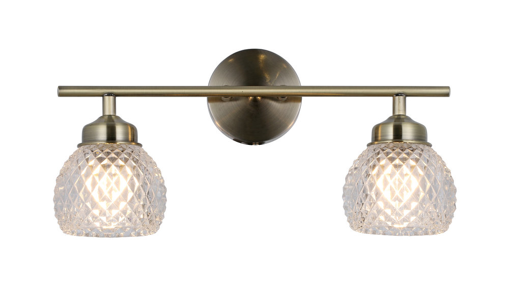 גוף תאורה צמוד קיר מעוצב וינטאג' לשימוש תאורת פנים. מקור אור E27X2. מיוצר מאלומיניום וזכוכית מאוירת. זמין בצבע ברונזה.