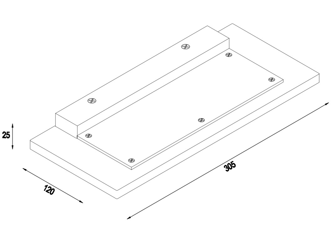| מידות במ"מ | אורך=305 רוחב=25 עומק=120 |