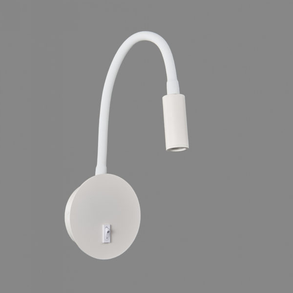 גוף תאורה צמוד קיר מתכוונן עם מוט + כפתור הדלקה לשימוש תאורת פנים. מקור אור 3W LED. מיוצר מאלומיניום. זמין בצבע שחור מט, לבן מט. מתאים ליד מיטה