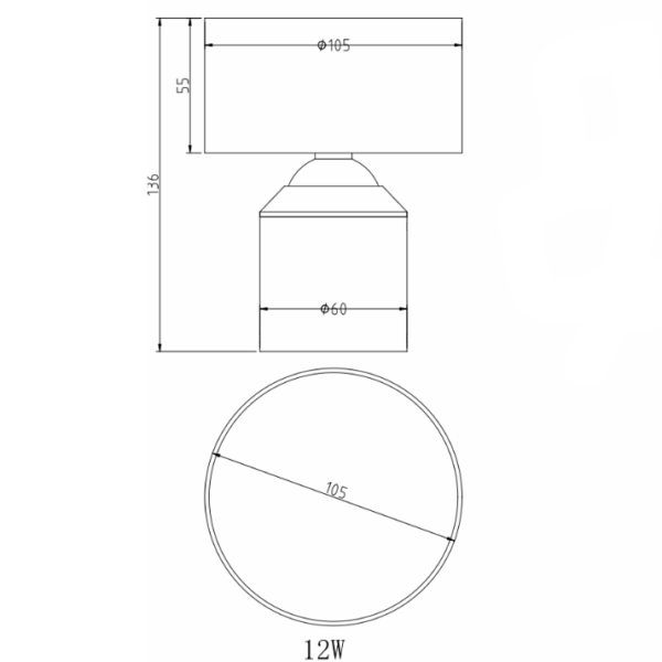 גוף תאורה צילינדר צמוד תקרה מעוצב מתכוונן לשימוש תאורת פנים. מקור אור 12W LED. מיוצר מאלומיניום. זמין בצבע שחור מט, לבן מט.