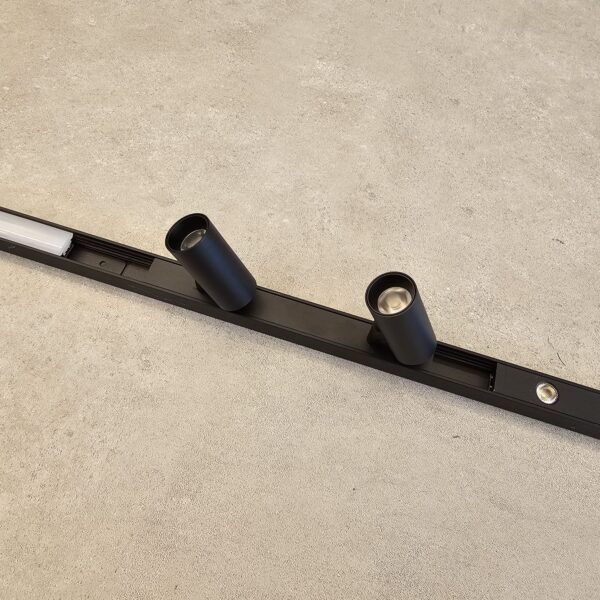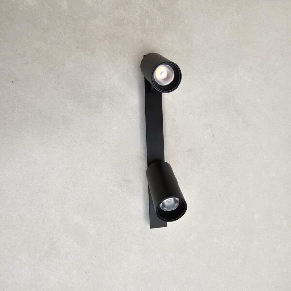 גוף תאורה מגנטי ספוט עגול זוגי מתכוונן מעוצב לשימוש תאורת פנים. מקור אור 2X3W LED OSRAM. מיוצר מאלומיניום. זמין בצבע שחור מט. מערכת מגנטית TIK TAK חדשה 2024.