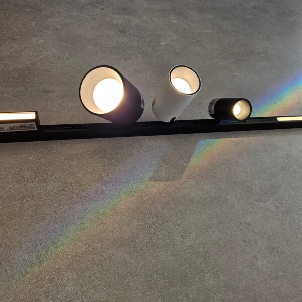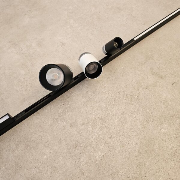 גוף תאורה מגנטי ספוט עגול מתכוונן מעוצב לשימוש תאורת פנים. מקור אור 3W LED CREE. מיוצר מאלומיניום. זמין בצבע שחור מט, לבן ושחור מט, זהב ושחור מט. מערכת מגנטית MICRO 0.5CM חדשה 2024.