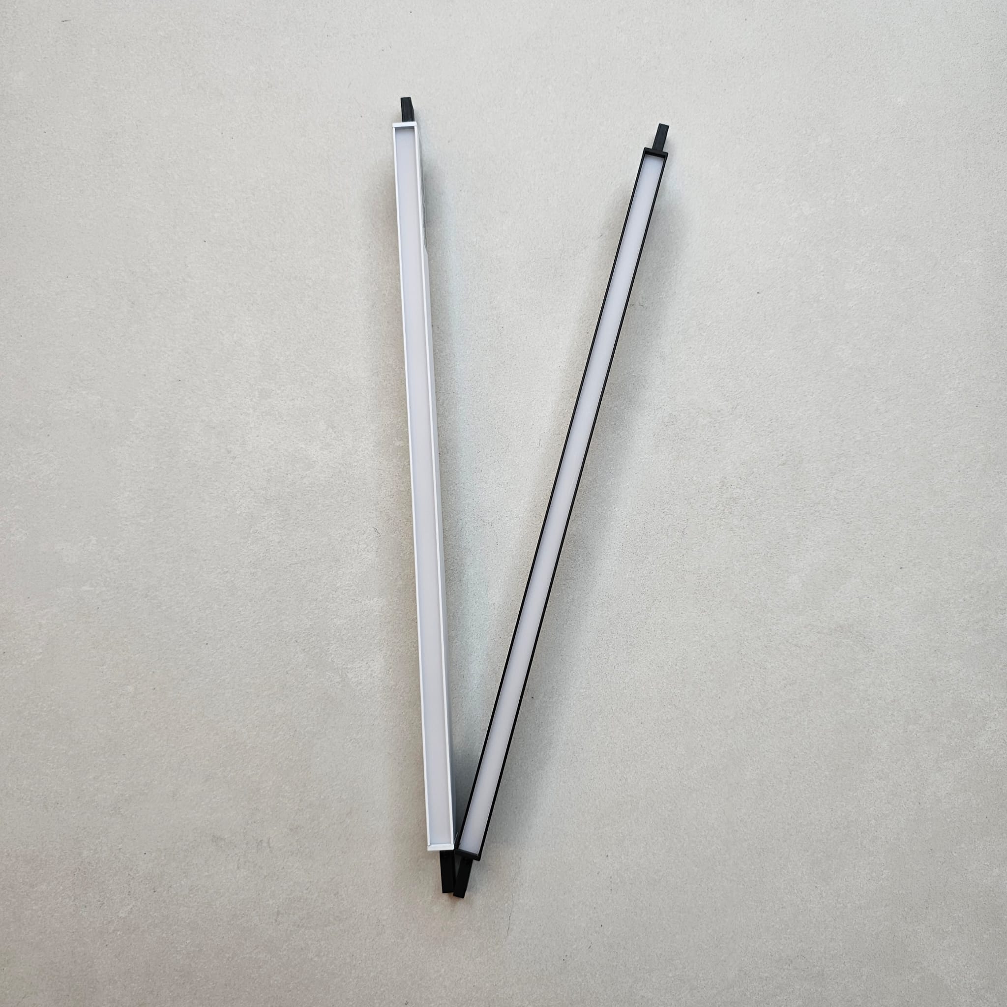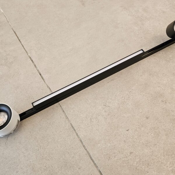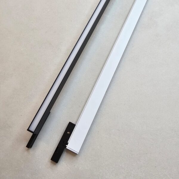 גוף תאורה פס מגנטי חלבי חיצוני קצר מעוצב דק במיוחד לשימוש תאורת פנים. מקור אור 8W LED CREE. מיוצר מאלומיניום. זמין בצבע שחור מט, לבן מט. מערכת מגנטית MICRO 0.5CM חדשה 2024. מותקן מחוץ לפרופיל.