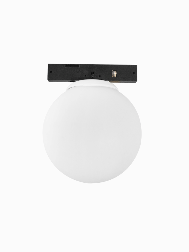 גוף תאורה מגנטי כדור חלבי מעוצב לשימוש תאורת פנים. מקור אור 3W LED CREE. מיוצר מאלומיניום. זמין בצבע לבן מט. מערכת מגנטית MICRO 0.5CM חדשה 2024.
