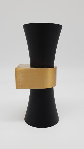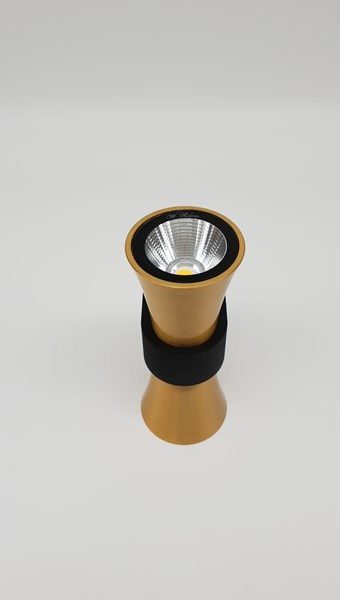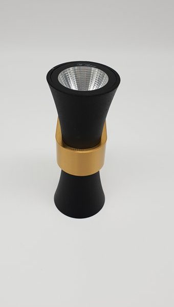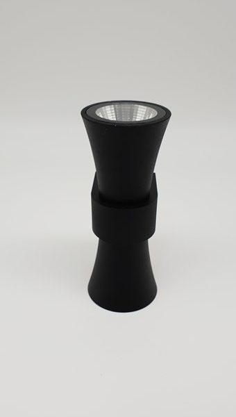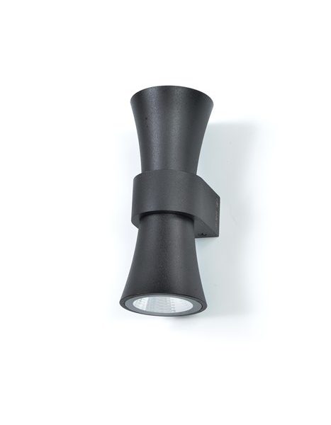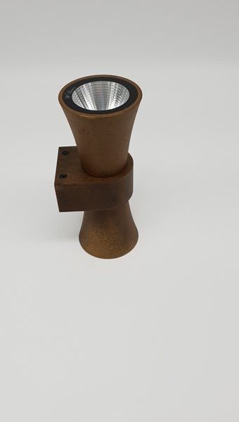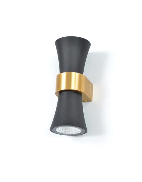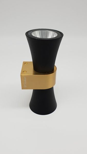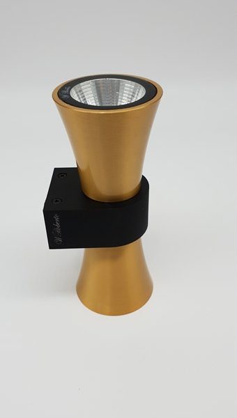 גוף תאורה מעוצב צמוד קיר UP&DOWN לשימוש תאורת פנים. מקור אור 10W LED. מיוצר מאלומיניום, זמין בצבע לבן חולי. שחור חולי, שחור טבעת זהב, זהב טבעת שחורה, חלודה.