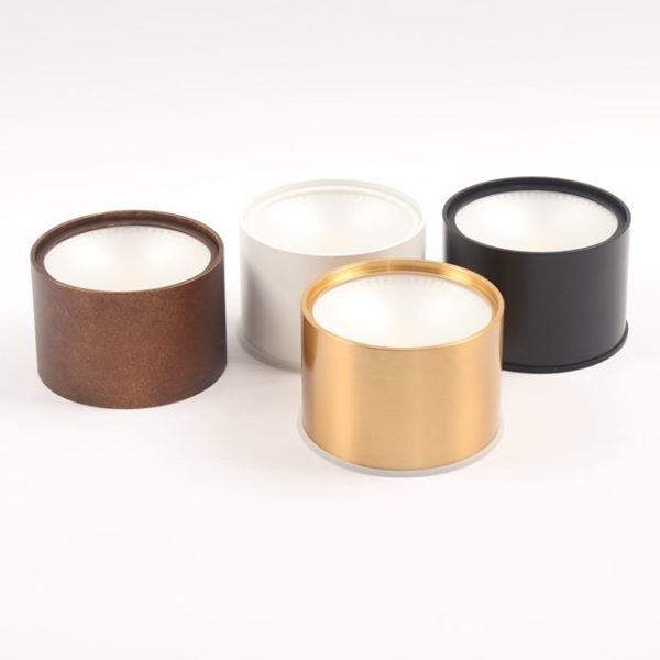 גוף תאורה צילינדר צמוד תקרה מוגן מים לשימוש תאורת פנים וחוץ. מיוצר מאלומיניום, זמין בצבע שחור, לבן, זהב. הקוטר משתנה בהתאם לבחירת הואט.