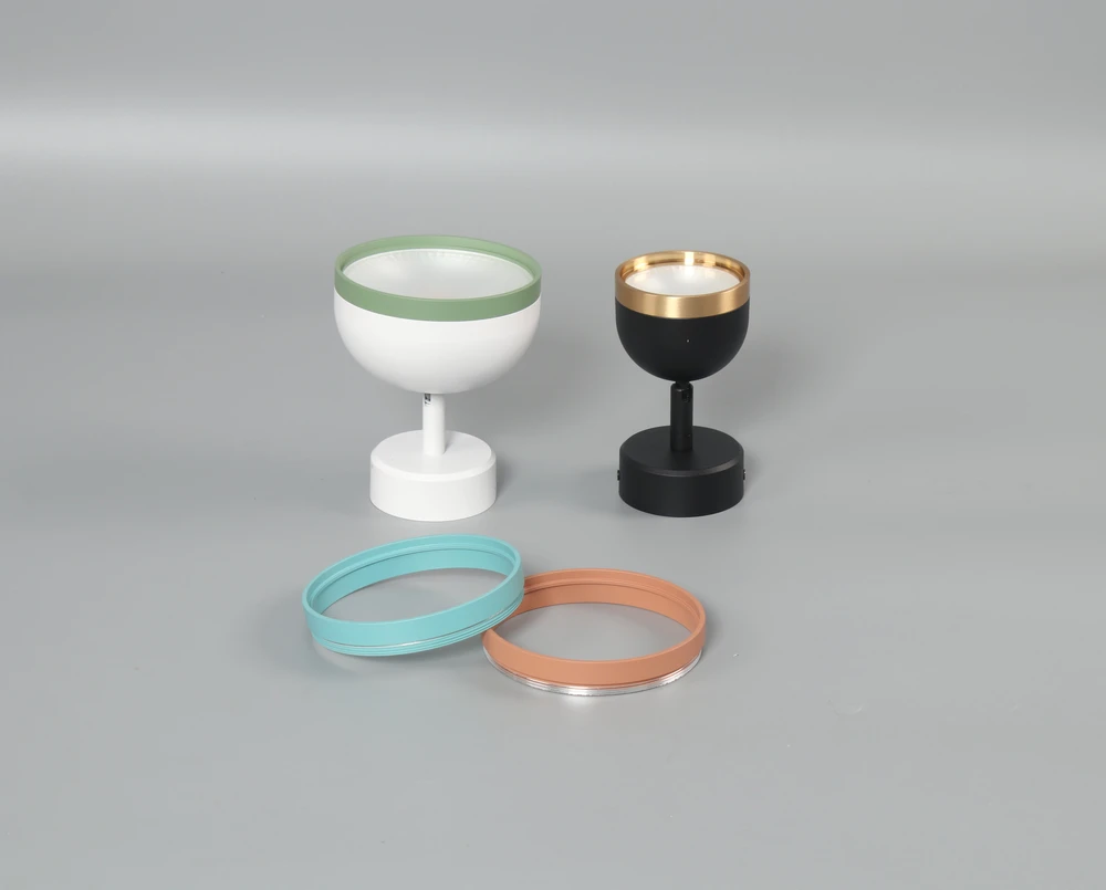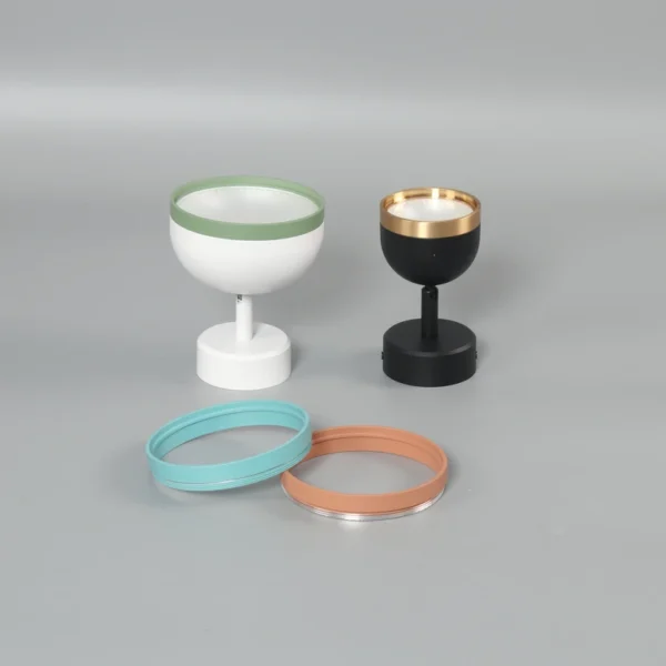 גוף תאורה צילינדר צמוד מתכוונן מעוצב. לשימוש תאורת פנים. מקור אור 7W LED. מיוצר מאלומיניום. זמין בצבע שחור מט, לבן מט. וטבעת זהב. ניתן לעמעום.