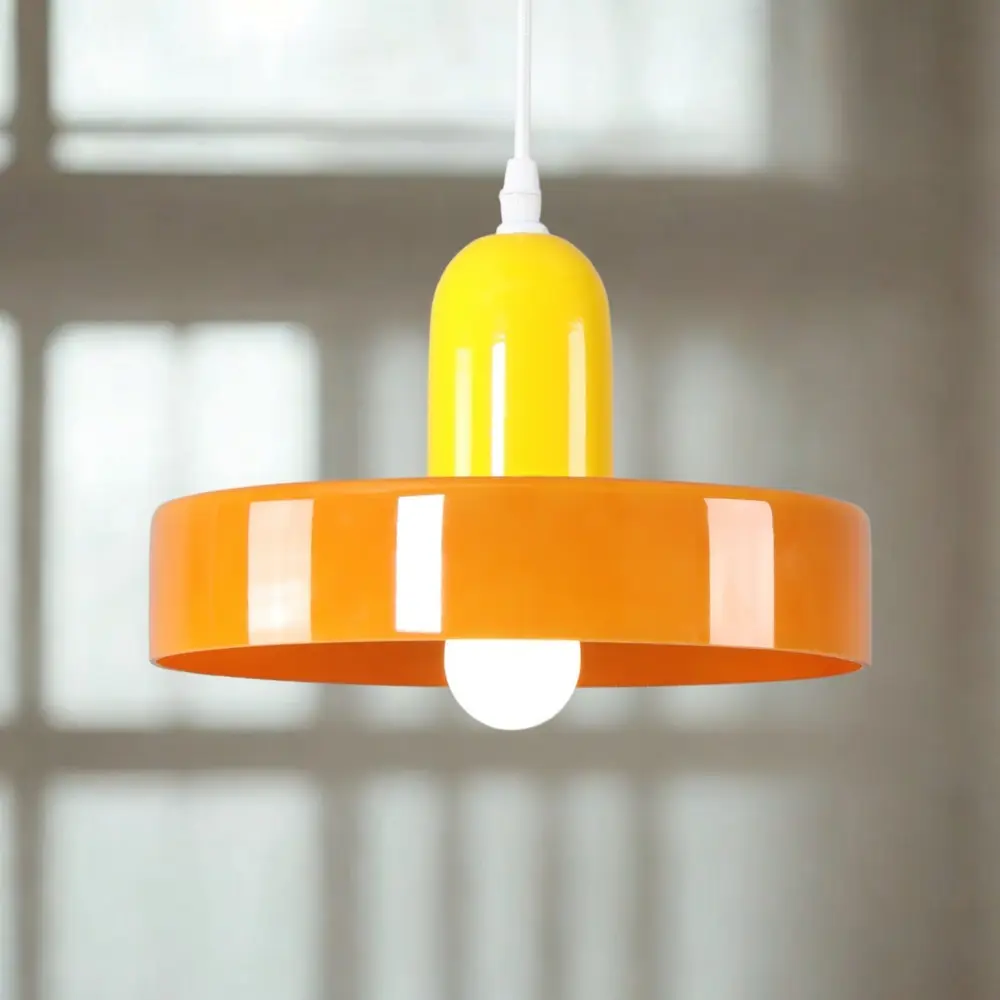 גוף תאורה תלייה מעוצב לשימוש תאורת פנים. מקור אור E27 מיוצר מזכוכית. זמין במגוון צבעים וינטאג'. כתום, חום, לבן, ירוק, צהוב. כובע עליון בצבעים אדום, ורוד, לבן, ירוק, צהוב.